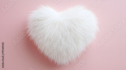 White Fur Heart on Pink Background.