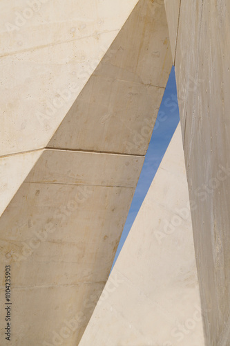White geometric shape concrete background with sky