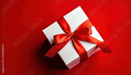 White Gift Box Tied with Red Ribbon on Red Background – Valentine's Day Banner