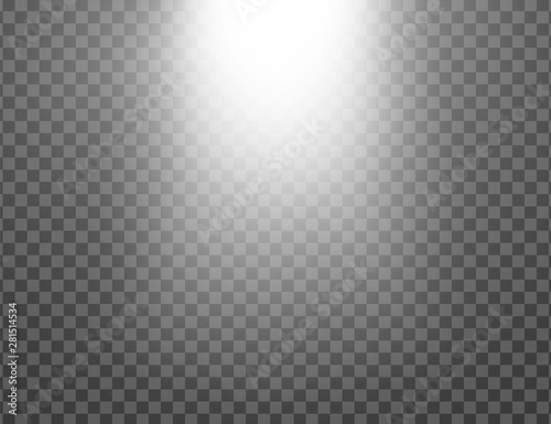 White glowing light explodes isolated on transparent background. Sun rays. Paradise glow. Realistic decoration effect. Vector illustration