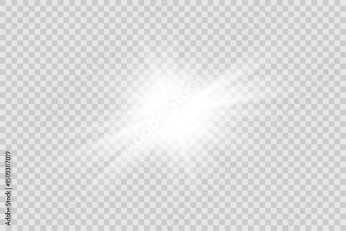 White glowing light explodes on a transparent background. with ray. Transparent shining sun, bright flash.