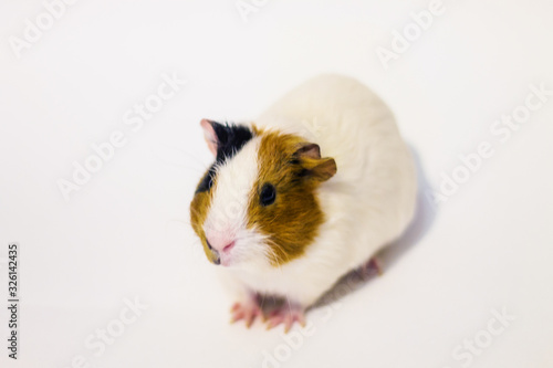 White Guinea pig on a white background with