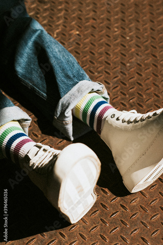 apparel, boy, branding, canvas, casual attire, casual clothes, clean, comfortable, copy space, cuff, fashion, foot, foot, footwear, gay, high-quality, hip hop, jean, lace, leg, light, lying down, male, man, man, minimal, modern, outdoors, outfit