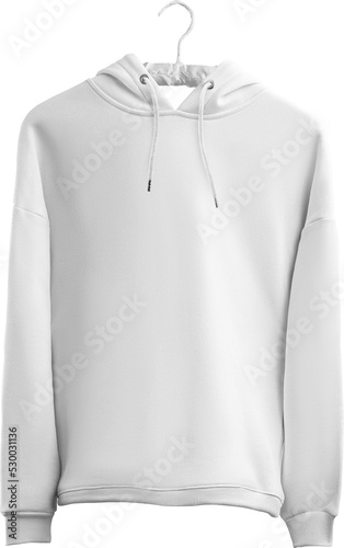 White hoodie mockup with laces, on a hanger, png, fashionable clothes, isolated.