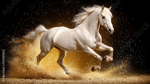 horse, white, galloping, gold, light, animal, majestic, beauty, powerful, running, speed, energy, action, nature, equine, freedom, dressage, portrait, photo, studio, dramatic, dust, splash, motion, elegant, noble, athletic, strength, mammal, stunning, photo, art, image, gorgeous, horseback, riding, farm, stable, breed, spirit, power, photogenic, detail, wild