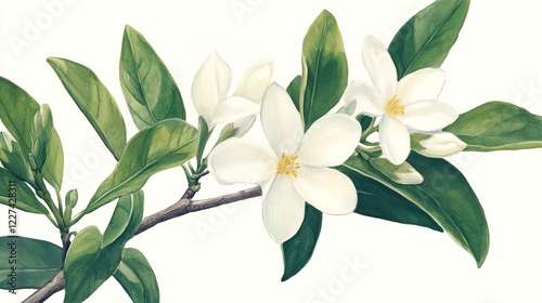 jasmine, flower, white, green, leaf, tree branch, nature, floral, plant, bloom, delicate, fragrant, flower petals, garden, natural, blossom, tropical, growth, fresh, beautiful, stem, foliage, aromatic, botany, shrub, spring, elegance, pure, peaceful, outdoors, vibrant, serene, organic, lush, flora, beauty, bright, ornamental, wild, calm, sunlight, landscape, high-coloured