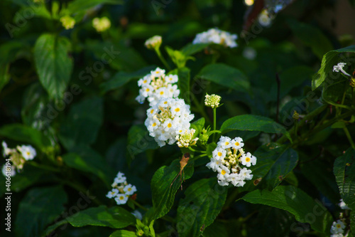 White Lantana Camara Flowers in the garden