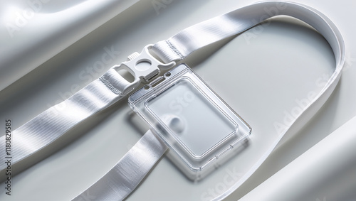 lanyard, holder, id, card, badge, plastic, white, fabric, background, accessory, office, security, identification, employee, access, event, conference, meeting, workplace, business, professional, clean, minimalist, simple, design, style, texture, material, strap, clip, blank, empty, clear, transparent, smooth, elegant, modern, sleek, detail, closeup, overhead
