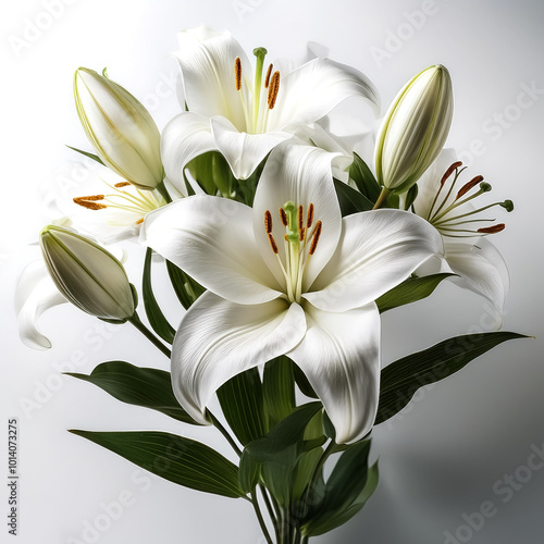 white lilies on a solid white background