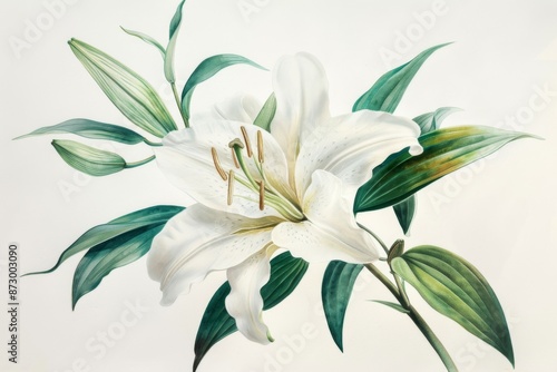 white lily, illustration, flower, floral, art, nature, plant, bloom, blossom, flower petals, green leaf, botanical, detailed, realistic, watercolor, elegant, beautiful, delicate, garden, fine art, painting, organic, wildflower, flora, artistic, hand-drawn, garden flower, natural beauty, stunning, flower petals, botany, stylish, exquisite, classic, timeless