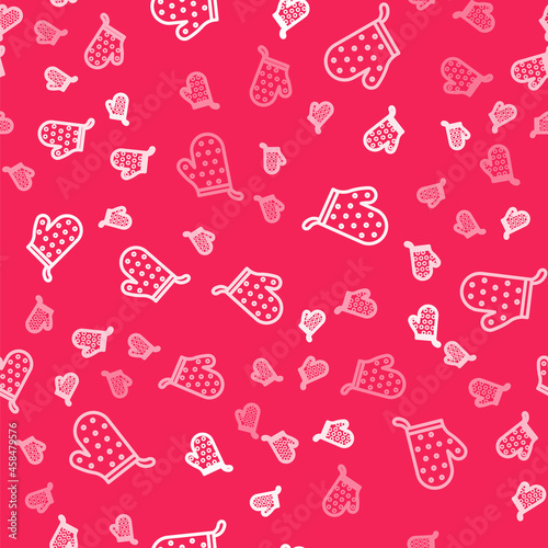White line Oven glove icon isolated seamless pattern on red background. Kitchen potholder sign. Cooking glove. Vector