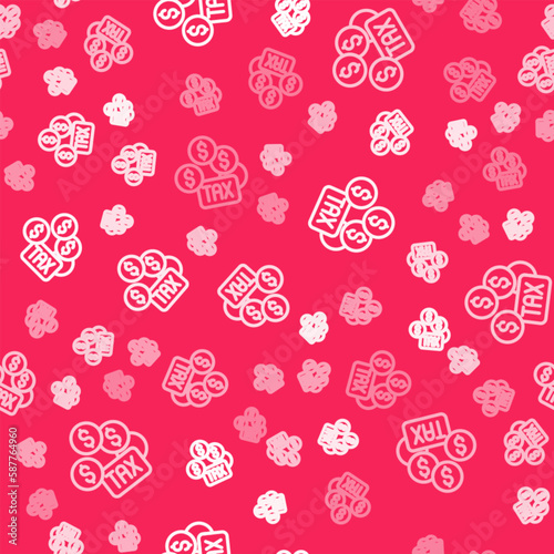White line Tax payment icon isolated seamless pattern on red background. Vector