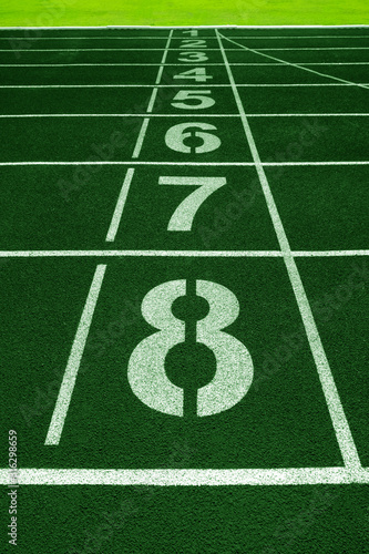 White lines of stadium and texture of running racetrack green rubber racetracks