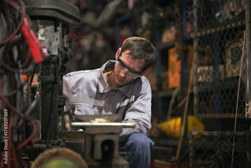 damaged, technician, reusing, old, engineer, checking, used, car, engine, warehouse, maintenance, sale, order, part, people, repairman, scrapyard, inspecting, rust, oily, auto, caucasian, male, motor, spare, man, business, block, junkyard, spare part, vehicle, reuse, work, storehouse, garbage, junk, metal, automobile, garage, workplace, mechanic, automotive, industry, scrap, person, dirty, storage, inventory, service