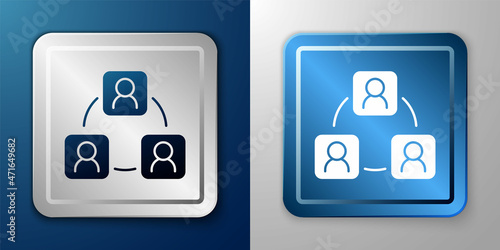 White Meeting icon isolated on blue and grey background. Business team meeting, discussion concept, analysis, content strategy. Presentation conference. Silver and blue square button. Vector