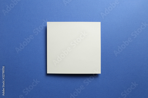 White memo pad, empty paper on dark blue background. top view, copy space