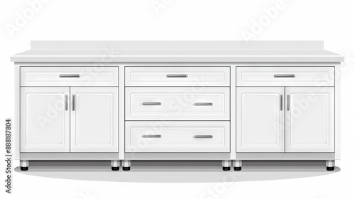 White modern kitchen cabinet with drawers and doors in a clean, minimalist design, furniture, storage solution concept