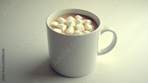White Mug of Hot Chocolate with Marshmallows on White Table