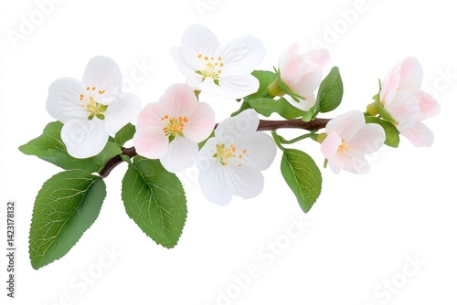 cherry blossom, white flower, green leaf, transparent, botanical, blossom, delicate, isolated, anemone, flower, anther, beauty, tree branch, cut-out, floral, leaf, nature, flower petals, spring, bloom, green, photo, plant, white, image, flowering
