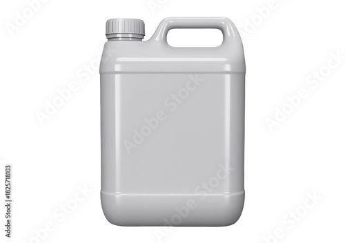 White plastic canister mockup for liquid, chemical, or oil products isolated on transparent white background