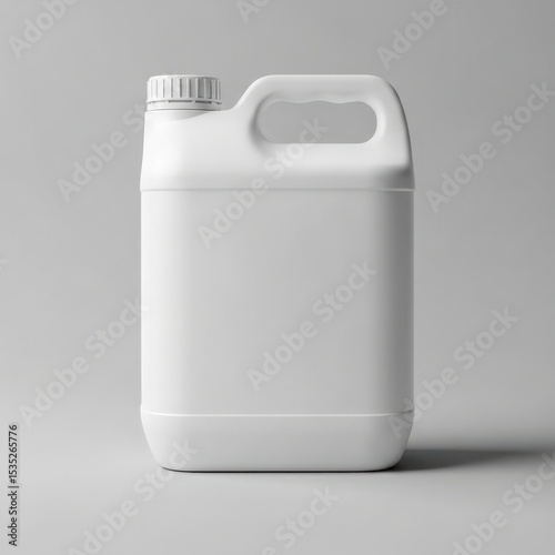 White Plastic Jerrycan on Gray Background Product Shot for Industrial Chemical and Liquid Storage Branding and Marketing