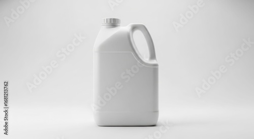 White plastic jug, handle, gallon, container, packaging, studio shot.