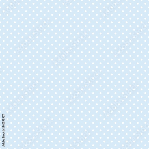 White polka dot seamless pattern on powder blue background with repeating round dots