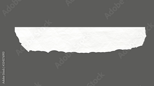 White ripped striped note, copybook, notebook paper stuck on light gray background.