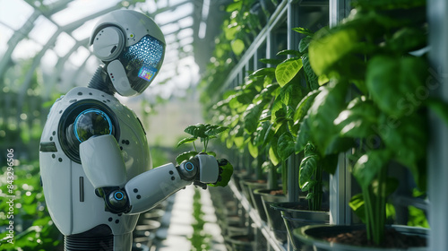 robot, greenhouse, plant, futuristic, automation, horticulture, technology, agriculture, ai, robotic, hydroponics, artificial intelligence, glasshouse, foliage, sunlight, high technology, greenery, gardening