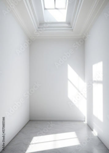White room corner with sunlight and window shadow Empty room interior design architecture blank design room striking structures clean lines geometric shapes dramatic angles play of light and