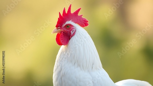 portrait, farm animal, feather, closeup, vibrant, beak, wattle, majestic, elegant, rural, nature, sunlight, detailed, proud, bird, farm animal, countryside, photo, textured, serene, golden light, natural, crisp, eye-catching, isolated, fluffy