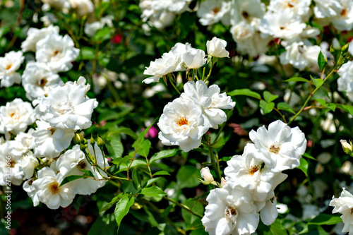 White roses in full blooming at Ayabe garden in Japan