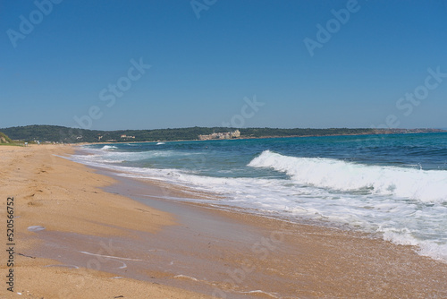 White sand beach with crystal clear azure sea water in Bulgaria. Black sea