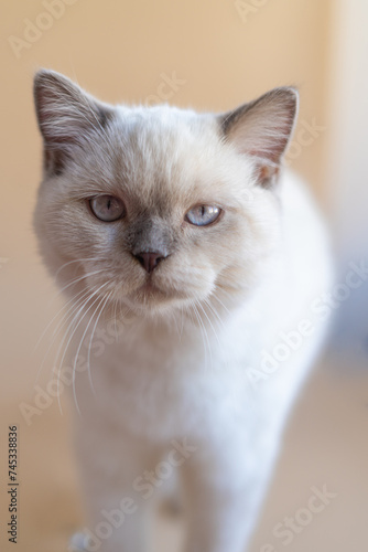kitten, scottish, cat, portrait, look, small, friendly, 1, studio, young, white, pet, teenage, pretty, background, animal, adorable, greeting, decoration, celebration, card, cat, short hair, posing, december, fur, sitting, british, winter, cute, looking, pedigree, domestic, new year, beautiful, mammal, christmas, vertical, lovely, funny, grey, girl, beige, blue eye