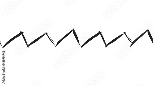 White seamless background with broken line drawn with ink on white background, zigzag pattern drawn with dry brush, abstract curved line in the form of mountains, crooked line drawn by child