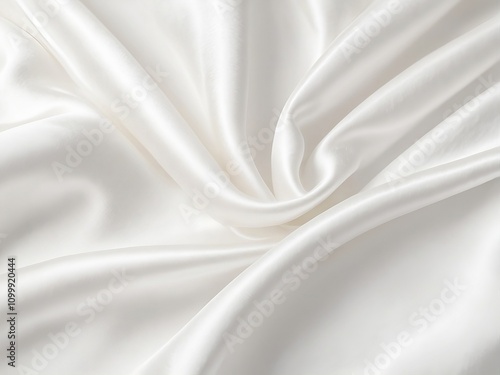 White silk satin fabric with softly wrinkled waves. Luxury white background