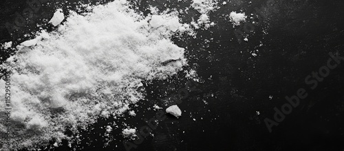 White snow texture layered on a black background showcasing the contrast of snow against dark surfaces for creative design use