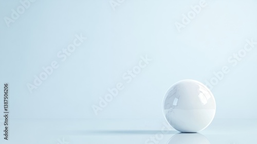White Sphere on Pale Blue Background, Minimalist Style, High-Gloss Finish, Right-side Composition, Smooth Surface, Resting Motionless, Studio Setting, Cool Serene Tones, Ideal for Product Mockups