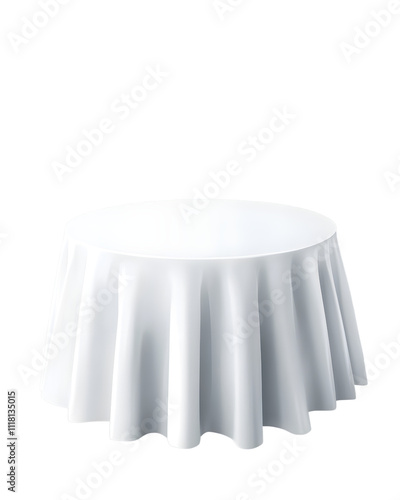 tablecloth, table, round table, fabric, textile, draped, fold, elegant, clean, simple, studio, mock-up, display, presentation, product, showcase, surface, blank, empty, isolated, white, minimalist, event, party, wedding, eatery, cafes