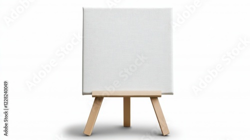 White Textured Canvas on Wooden Easel, Minimalist Studio Shot