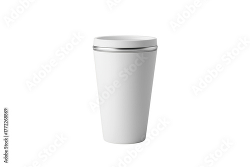 white, cup, travel, container, beverage, drink, portable, recyclable, thermal, insulated, lid, silver, metallic, modern, minimalist, clean, simple, object, studio, isolated, black, background, refreshment, hydratation, liquid