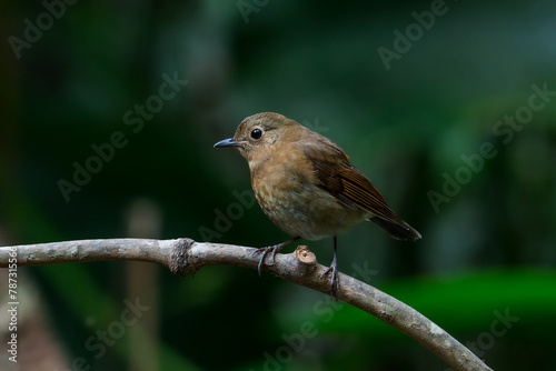 White-tailed Robin Brown feathers, red-brown wings The underbody is slightly lighter or yellowish. The chest has a white-yellow stripe. The middle of the belly is white and yellowish.