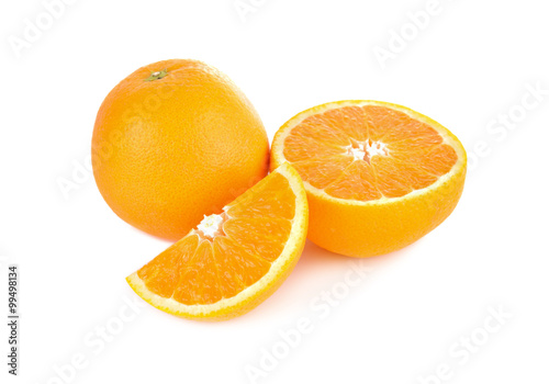 whole and half cut orange on white background
