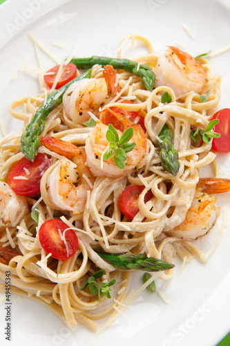 food, pasta, linguine, shrimp, seafood, prawn, vegetarian, tomatoes, tomatoes, oregano, parmesan cheese, sauce, prepared, dinner, meal, epicure, savoury, italian, lunch, healthy, plate, vegetable, freshness, noodle, eatery, refreshment, seasoning, organic, cookery, spice
