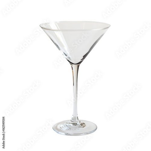 wide-brimmed martini glass with crisp modern design, clear and clean on white