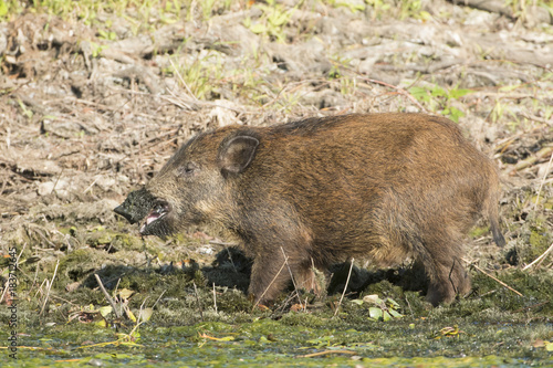 wild, boar, wildlife, baby animal, pork meat, nature, eat, mud, water, shore, natural
