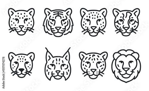 wild, cat, linear, icon, set, big, jungle, animal, emblem, symbol, felino, nature, design, style, silhouette, collection, graphic, element, tiger, lion, leopard, cheetah, lynx, panther, predator, fauna, wildlife, illustration, minimal, artistic, abstract, monochrome, outline, modern, trendy, sleek, minimalist, creative, decorative, cartoonish, detailed, iconic, stylish, contemporary, zoological, diverse