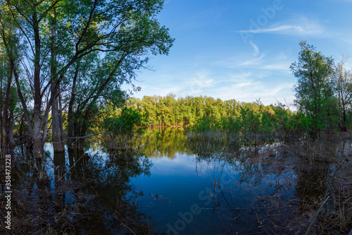 Wild forest and lake in a beautiful day