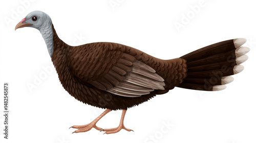turkey, bird, poultry, fowl, animal, wildlife, nature, feather, plumage, brown, white, tail, walking, half face, isolated, thanksgiving, dinner, meat, farm, farm animal, agriculture, beak, wing, leg, foot, claw, gobble, male, female, wild, domestic, game bird, hunting, tradition, autumn, fall, holiday, celebration, food