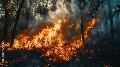 Wildfire devastates forest landscape california nature photo smoky environment dramatic viewpoint environmental impact